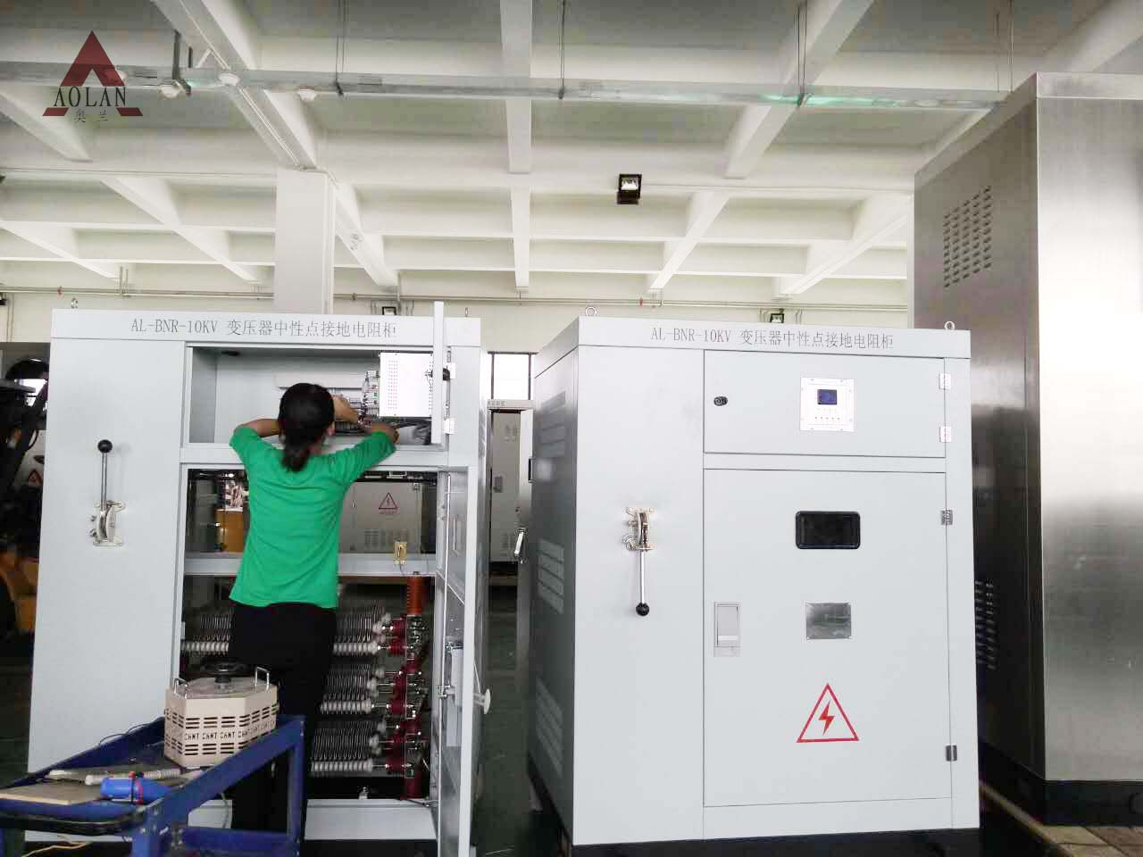 保定奥兰电气专业生产变压器中性点接地电阻柜。AL-BNR变压器中性点接地电阻柜适用于系统中性点采用小电阻或中电阻接地的场合。AL-BNR变压器中性点接地电阻柜将零散的Z型接地变压器(如系统无中性点引出则需加装)、电阻器、电流互感器、测量仪表、接地保护输出端子等电器设备整体组合在一个封闭金属柜内,AL-BNR变压器中性点接地电阻柜内的接地变压器为优质干式变压器。<br>变压器中性点接地电阻柜 变压器电阻柜 中性点接地电阻柜
