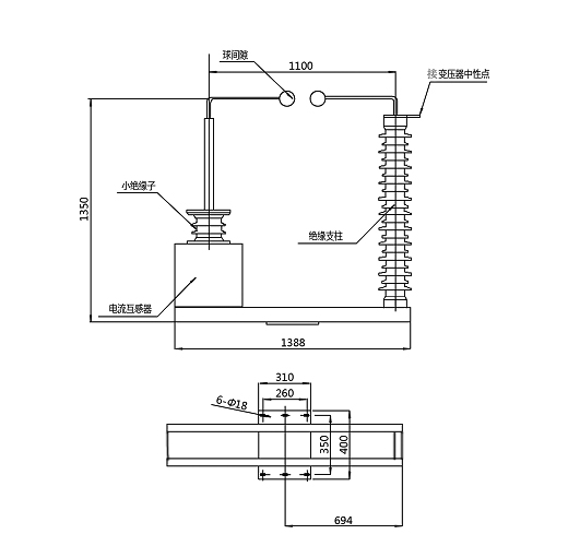 5、隔离开关的安装可参照附件GW8系列中性点隔离开关的安装说明进行。