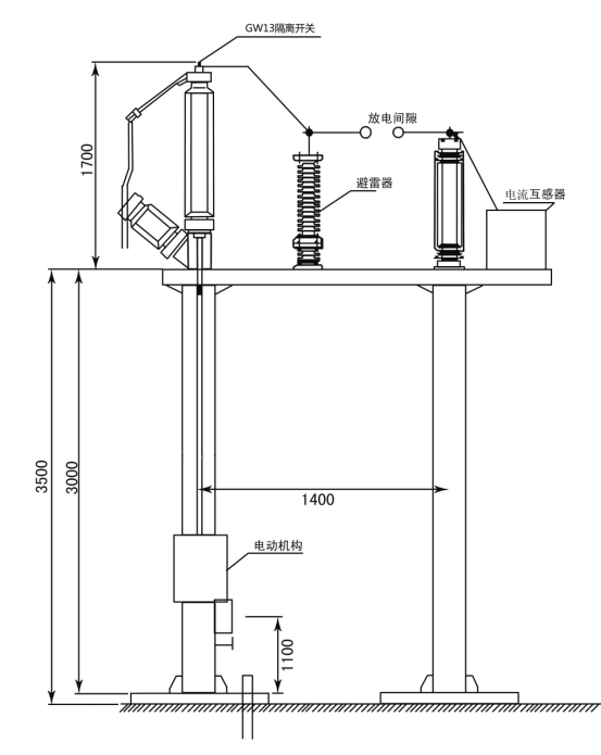 2、固定操作机构的槽钢支架和由操作机构到隔离开关导电杆转轴的钢管,不在本装置的供货范围内。均由安装单位现场制作,长度、尺寸现场确定。