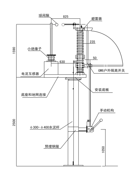 5、隔离开关的安装可参照附件GW8系列中性点隔离开关的安装说明进行。
